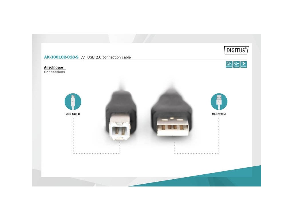 Digitus USB kabel A/samec na B/samec, 2x stíněný, černý, 1,8m