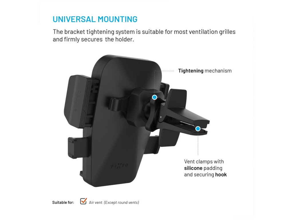 Držák FIXED Iconiq Vent s úchytem na ventilační mřížku, černý