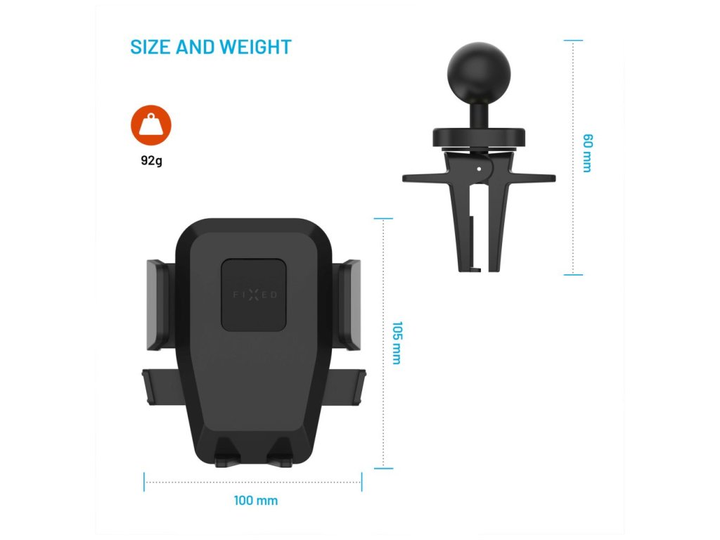 Držák je kompatibilní s telefony o šířce 5,3 až 8,3 cm. Díky rychloupínacímu systému Push and grip uchytíte telefon do držáku jednou rukou. Jen mobil lehce přitisknete na plochu držáku. Boční kleště se samy přizpůsobí vašemu telefonu. Jediným stiskem ho zase uvolníte. Mechanismus je tichý a plynulý.