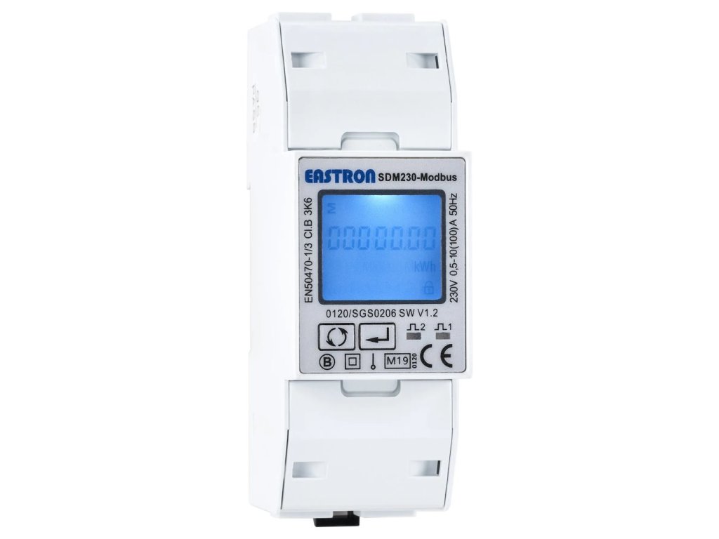 Moderní digitální jednofázový multifunkční elektroměr, který měří až 100 A přímé zátěže. SDM230modbus má 15 měřených parametrů a 4 různé režimy měření kWh, které byly navrženy s ohledem na rozvoj fotovoltaiky, jako je solární a bateriové úložiště.