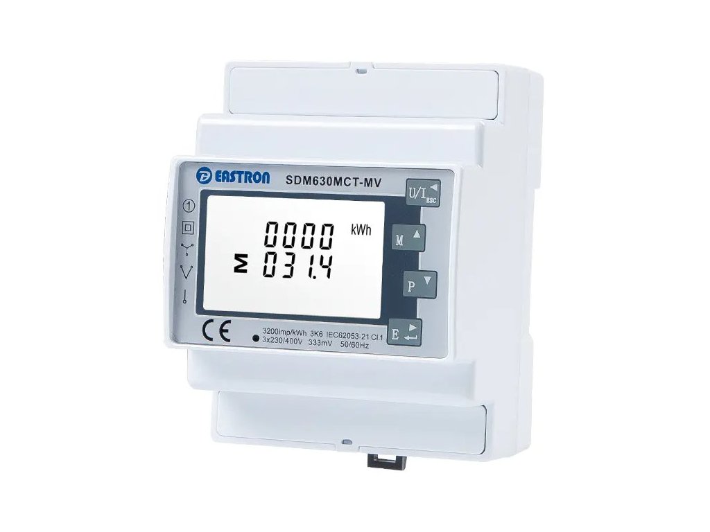 Eastron SDM630MCT-MV (NON-MID), 0,333mV vstup Modbus, RS485, třífázový, pulsní výstupy