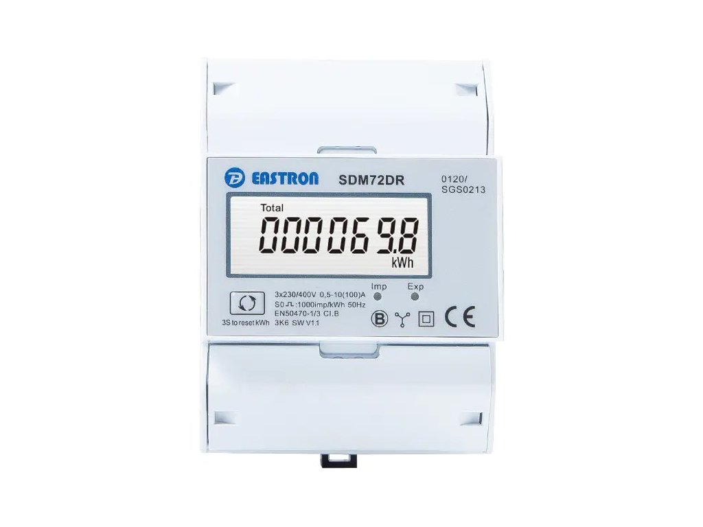 Eastron SDM72DR-MID, Multifunkční elektroměr, aktuální výkon, celková spotřeba, pulsní výstup, třífázový, 100A