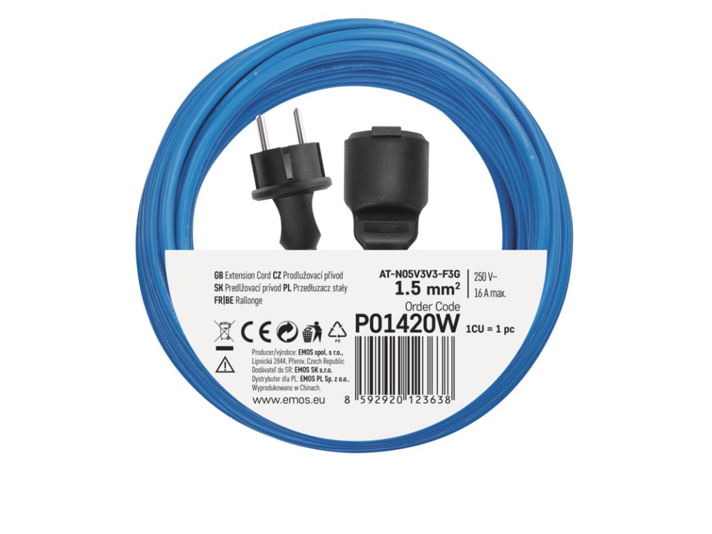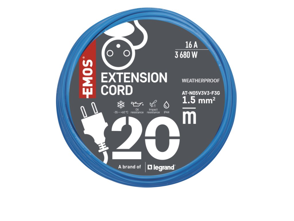 EMOS PRODLUŽKA 1Z 20M 1,5MM NEMRZNOUCÍ KABEL