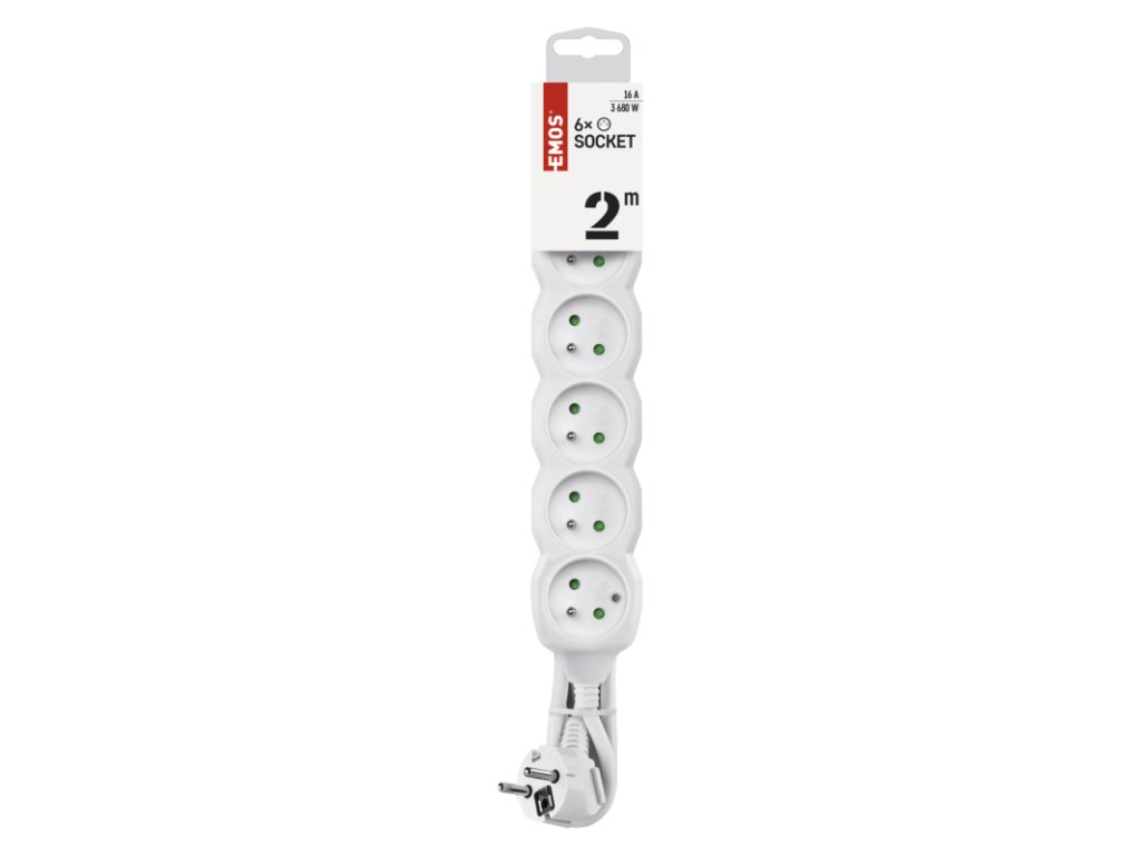 EMOS Prodlužovací přívod 6Z/2m 3680W,PVC,bílá