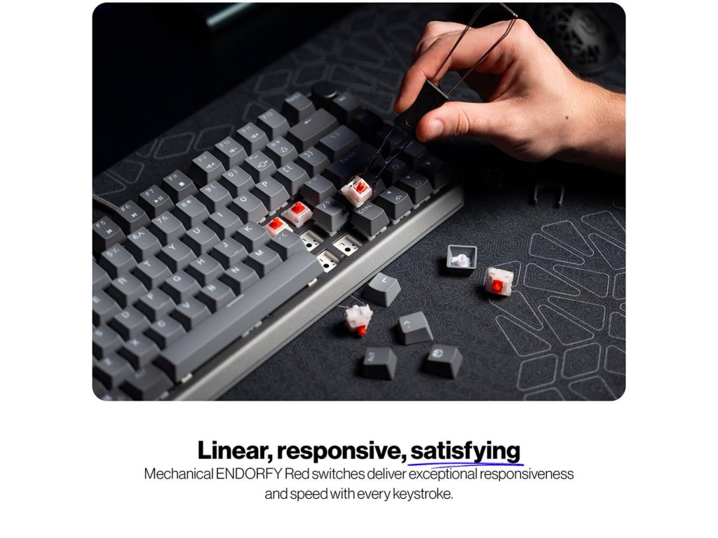 Pokročilá mechanická klávesnice se 75% rozložením a exkluzivními spínači Endorfy Red.