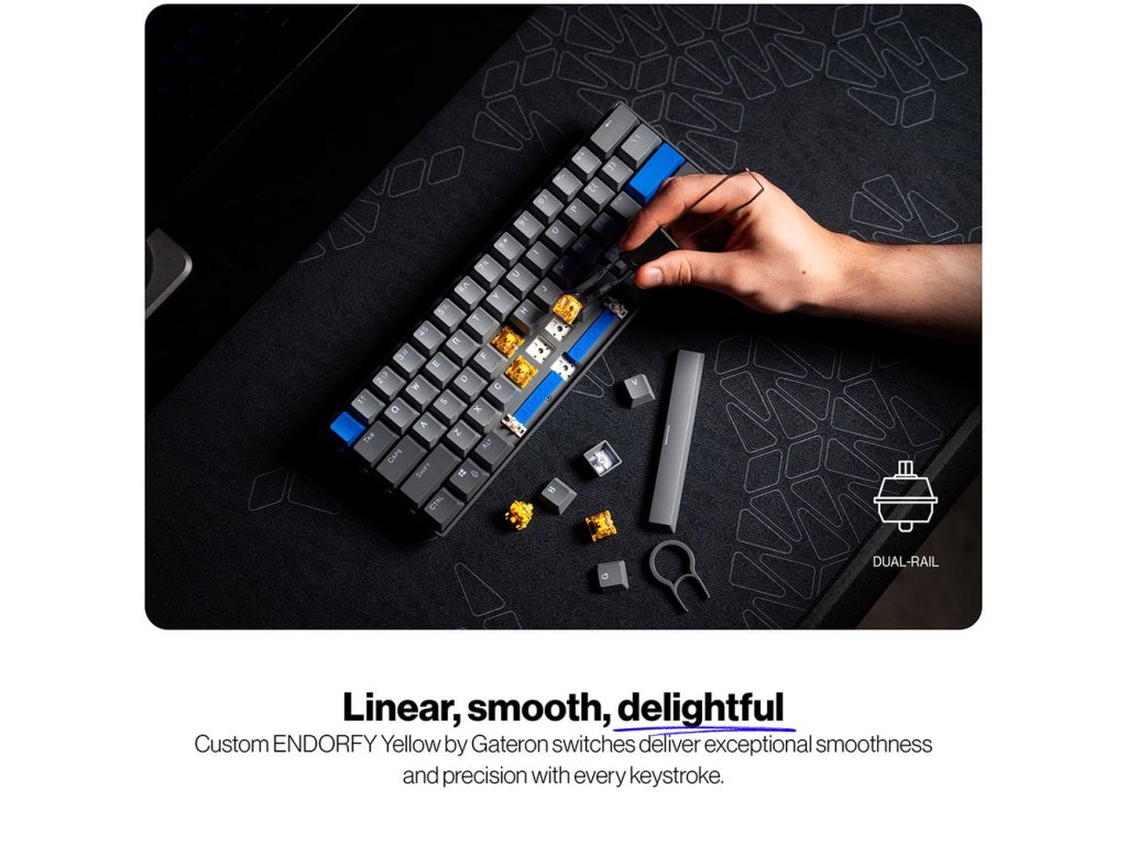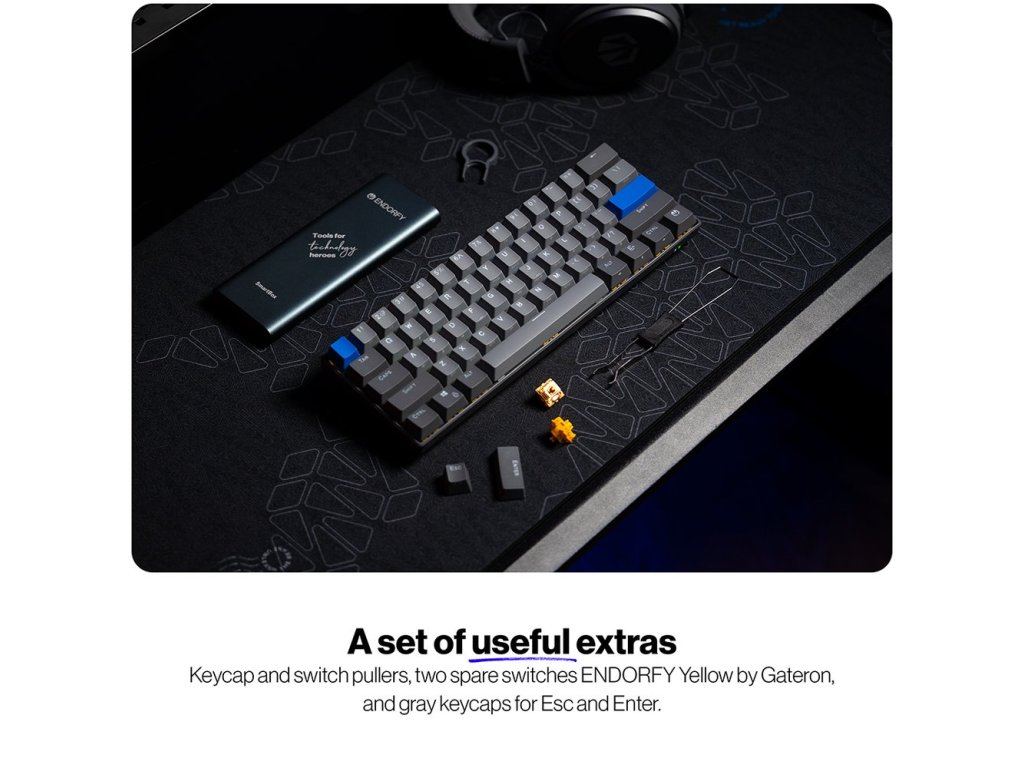 Bezdrátová mechanická klávesnice s kompaktním 60% layoutem a exkluzivními Endorfy Yellow spínači.