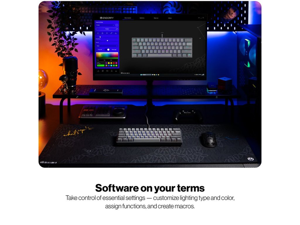 Exkluzivní lineární mechanické spínače inspirované oblíbenými spínači Endorfy Yellow. Mléčné pouzdro zajišťuje lepší rozptyl světla pro podsvícení, zatímco tovární předlubrikace garantuje hladký chod s hlubokým akustickým profilem.