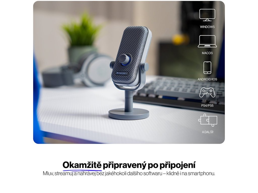 - Kompatibilita s rameny pro mikrofony Endorfy pro flexibilní nastavení polohy