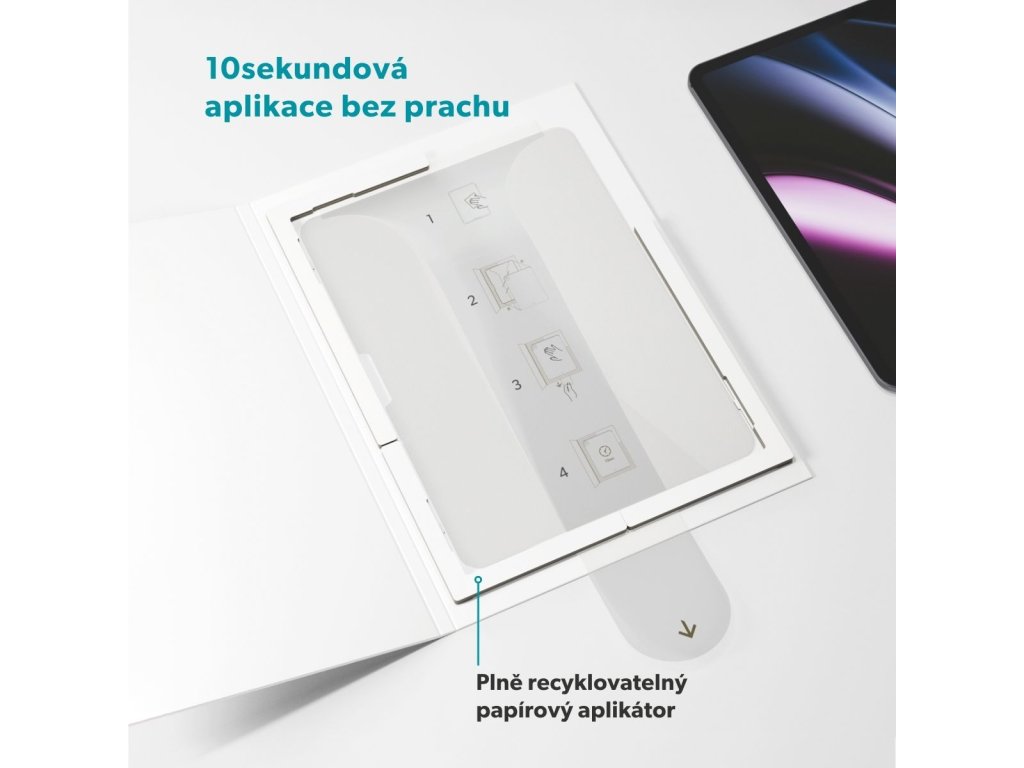 Každodenní ochrana pro váš iPad s extra snadnou instalací Epico Glass Screen Protector poskytuje spolehlivou ochranu displeje a zároveň snadnou instalaci bez komplikací. Díky jedinečnému aplikátoru proti prachu je sklo předem připravené k nalepení. Stačí vložit iPad do zásobníku – jedním tahem aplikátor odstraní veškerý prach a sklo perfektně přilne. Aplikátor je vyroben z papíru a lze ho po použití jednoduše recyklovat. Odolný a elegantní design Ochrana displeje s tvrdostí 5 Mohs (9H) prokazatelně odolá až 5 000 pohybům kovovou houbičkou, takže váš displej zůstane bezpečně chráněný před každodenním opotřebením. Zachovává přirozenou ostrost a věrné barvy, čímž zajišťuje čistý a nezkreslený obraz. Ultratenký profil o tloušťce pouhých 0,33 mm nepřidává žádný objem navíc a speciální vrstva proti otiskům prstů udržuje obrazovku bez šmouh. Díky 2,5D provedení s jemně zaoblenými hranami sklo plynule navazuje na tělo iPadu a je odolnější proti odštípnutí než běžná 2D ochranná skla.