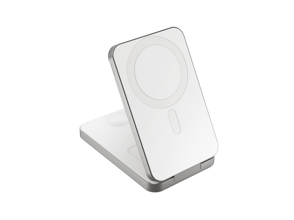 Bezdrátový nabíjecí stojánek a powerbanka v jednom Epico UltraBase EF50 je bezdrátový nabíjecí stojánek a powerbanka v jednom. Je kompatibilní s bezdrátovým nabíjením MagSafe s výkonem až 15 W (7,5 W pro iPhone) a díky silnému magnetickému uchycení udrží telefon vždy přesně na svém místě. Unikátní design 4v1 kombinuje univerzálnost nabíjecí stanice 3v1 s pohodlím powerbanky – ideální pro každodenní použití i na cesty. Kompaktní skládací provedení se snadno promění ve stojánek s flexibilní možností umístění telefonu na výšku i na šířku v režimu StandBy. Telefon lze nabíjet také ve složeném stavu. Bleskově rychlé nabíjení pro Apple Watch Nabíjejte svůj iPhone, Apple Watch, AirPods (či jiná sluchátka s bezdrátovým nabíjením) a další zařízení přes USB-C – všechny čtyři výstupy lze používat současně s celkovým výkonem až 12 W. Na rozdíl od standardních 2,5W nabíječek umožňuje až 5W výstup pro rychlé nabíjení vašich Apple Watch Ultra a Series 6 nebo novějších modelů. Kapacita 8 000 mAh poskytuje dostatek energie po celý den a 20W USB-C vstup i výstup zajišťuje rychlé a efektivní nabíjení vašich zařízení i dobíjení samotné powerbanky. Prémiové hliníkové tělo chrání před přehříváním, zatímco LED indikátor vám umožní mít stav baterie vždy pod kontrolou. Součástí balení je také praktický 0,3m USB-C na USB-C kabel.