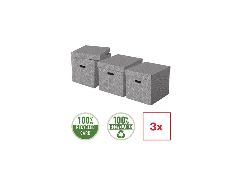 Sada 3 velkých dekorativních lepenkových úložných boxů Esselte Home na dokumenty a větší věci v domácnosti. Rychlé a snadné sestavení.