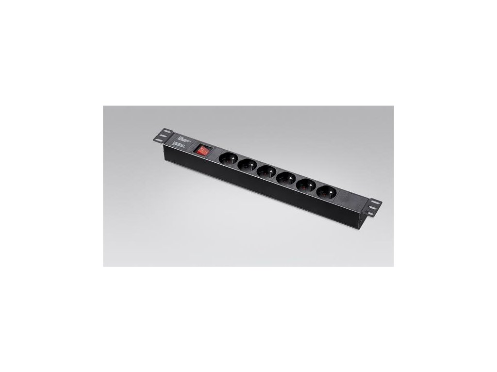 - zásuvka typ E (francouzská, česká) šestinásobná s vypínačem na plechové liště 19" do racku