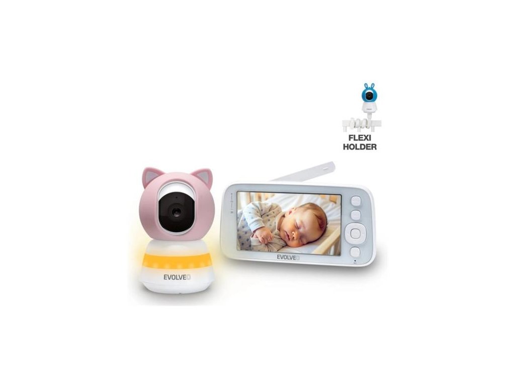 EVOLVEO Baby Monitor N5 - Set videochůvičky s 360° dohledem, obousměrnou komunikací a ukolébavkami, růžová
