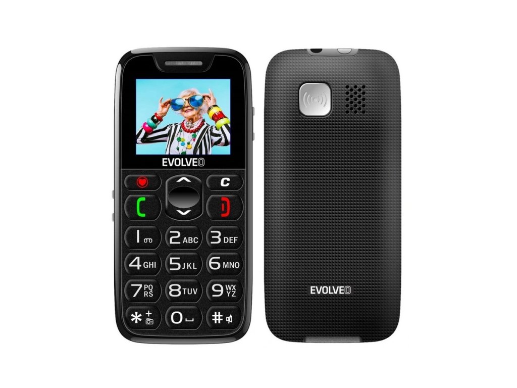 EVOLVEO EasyPhone, mobilní telefon pro seniory s nabíjecím stojánkem, černá
