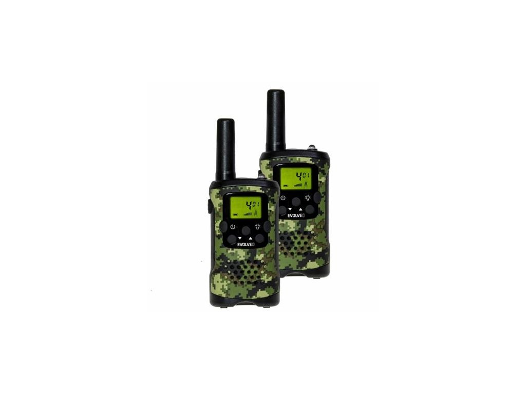 Dodávána s dobíjecími bateriemi, velký displej, dosah až 8 km v otevřeném prostoru, výkon 0.5 W, PMR 446 standard, VOX, CALL, Roger Beep, CTCSS, integrovaná LED svítilna, barva Army camouflage