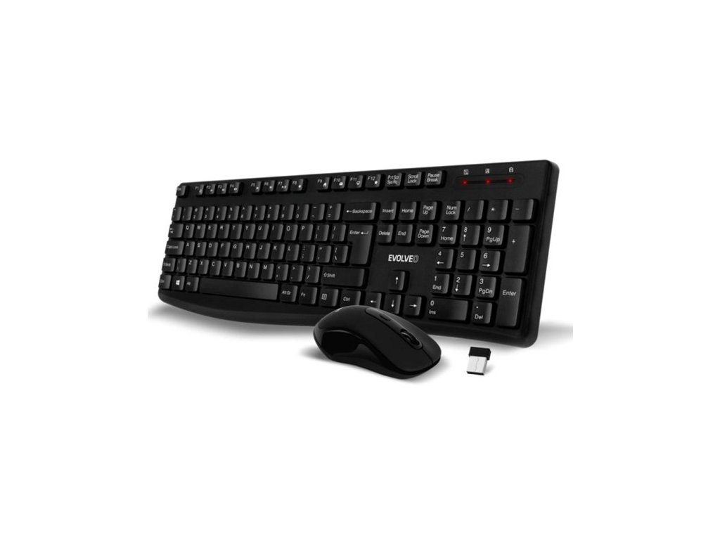 EVOLVEO K1050, bezhlučný set bezdr. klávesnice a myši, US INTL, černá