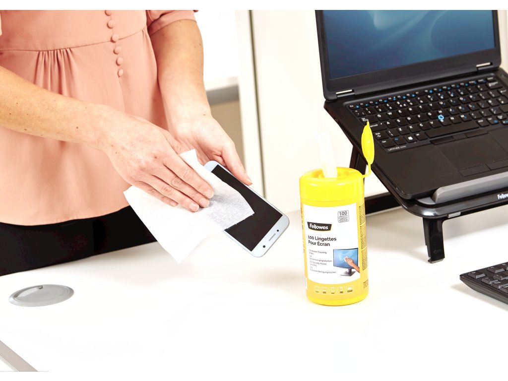 Vlhčené ubrousky určené k čištění obrazovek, skleněných ploch skenerů, počítačů PDA, filtry monitorů, monitory CRC, TFT/LCD, notebooků i smartphonu. Dóza obsahuje 100 ks vlhčených biologicky rozložitelných utěrek na čistění obrazovek. Nezanechávají šmouhy, mají antistatické vlastnosti, neobsahují alkohol a jsou dermatologicky testované. Šetrné k životnímu prostředí.