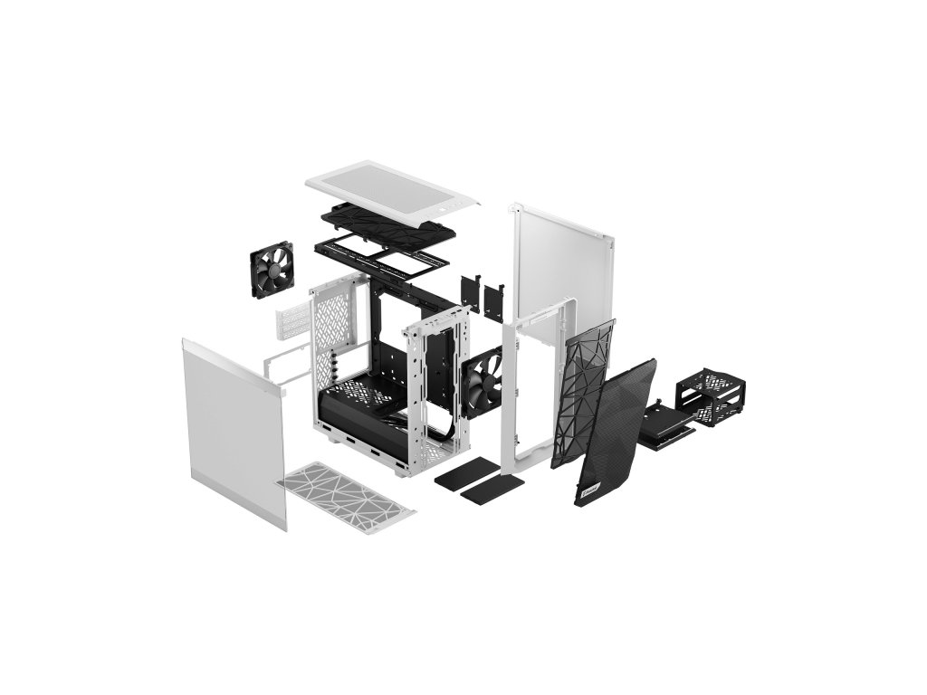 Fractal Design Meshify 2 Mini dvouvrstvý přední filtr s odnímatelným nylonem pro zvýšené proudění vzduchu flexibilní možnosti úložiště se dvěma přihrádkami na jednotky HDD/SSD a čtyřmi vyhrazenými držáky SSD