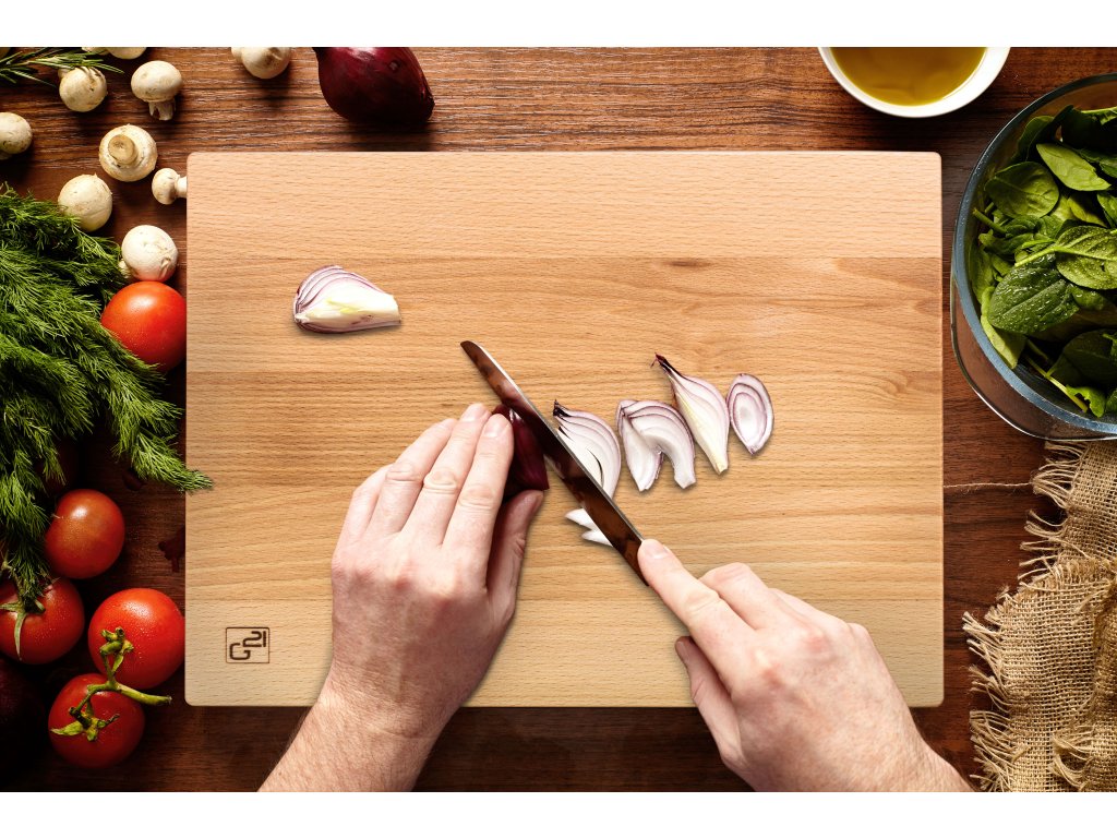 Dřevěná prkénka se vyrábějí z různých druhů dřeva, my jsme při výrobě prkénka G21 použili dřevo bukové pro jeho skvělé vlastnosti. Na rozdíl od dřeva dubového v sobě bukové dřevo nemá hořkost, která by se mohla přenést na potraviny, ani se nedá tak snadno znečistit a zabarvit, jako je tomu například u dřeva jasanového nebo lipového. Bukové prkénko je chuťově neutrální, tvrdé a odolné i správně hutné.