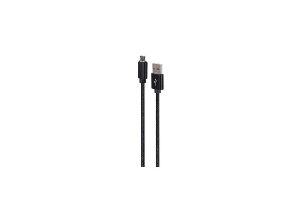 Bavlněný opletený Micro-USB kabel s kovovými konektory, 1,8 m, černý