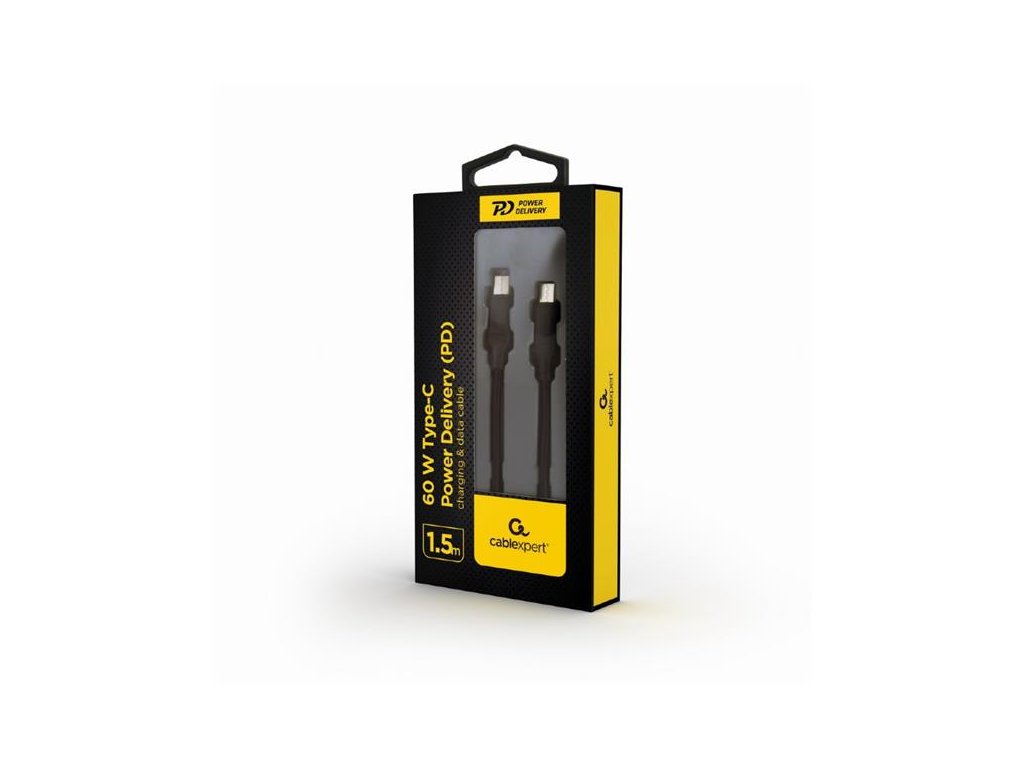 Gembird kábel USB-C (M) na USB-C (M), nabíjací / synchronizačný, 60W, PD, 1.5 m, čierny
