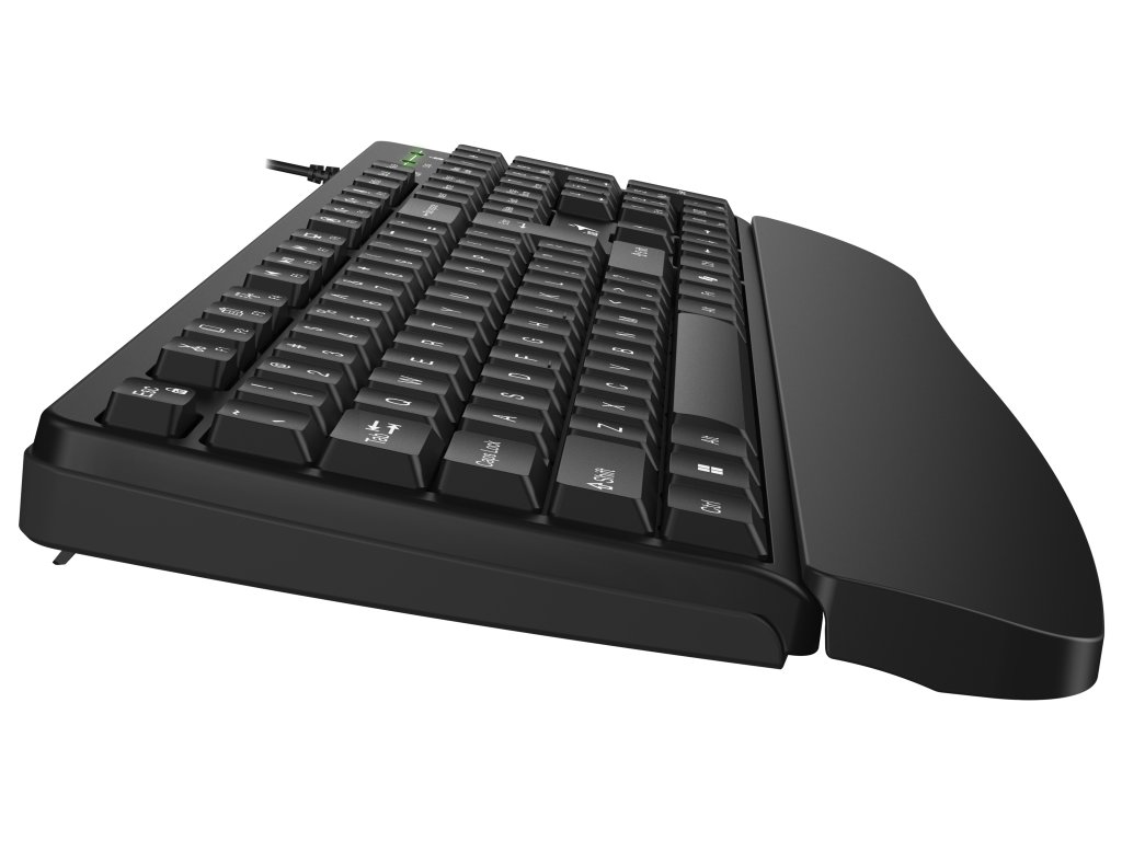 - Drátová klávesnice s ergonomickou opěrkou zápěstí pro pohodlné dlouhodobé psaní