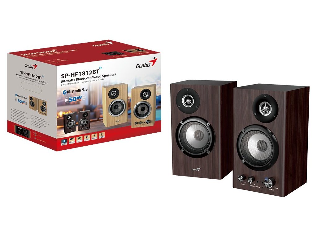 Výkonné dvoupásmové reproduktory Genius SP-HF1812, které mají styl a postarají se o plnohodnotné ozvučení v kanceláři i domácnosti. Jsou ideální pro pracovní i multimediální sestavy, hudební i filmové nadšence. Díky celkovému výkonu 50 W RMS si užijete kvalitní poslech bez kompromisů v každé běžné místnosti. Reproduktory Genius SP-HF1812 lze připojit bezdrátově pomocí technologie Bluetooth 5.3, ale nechybí ani standardní 3,5mm jack konektor, aby byl set kompatibilní nejenom s PC a notebooky, ale také smartphony, tablety nebo TV.