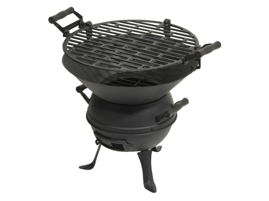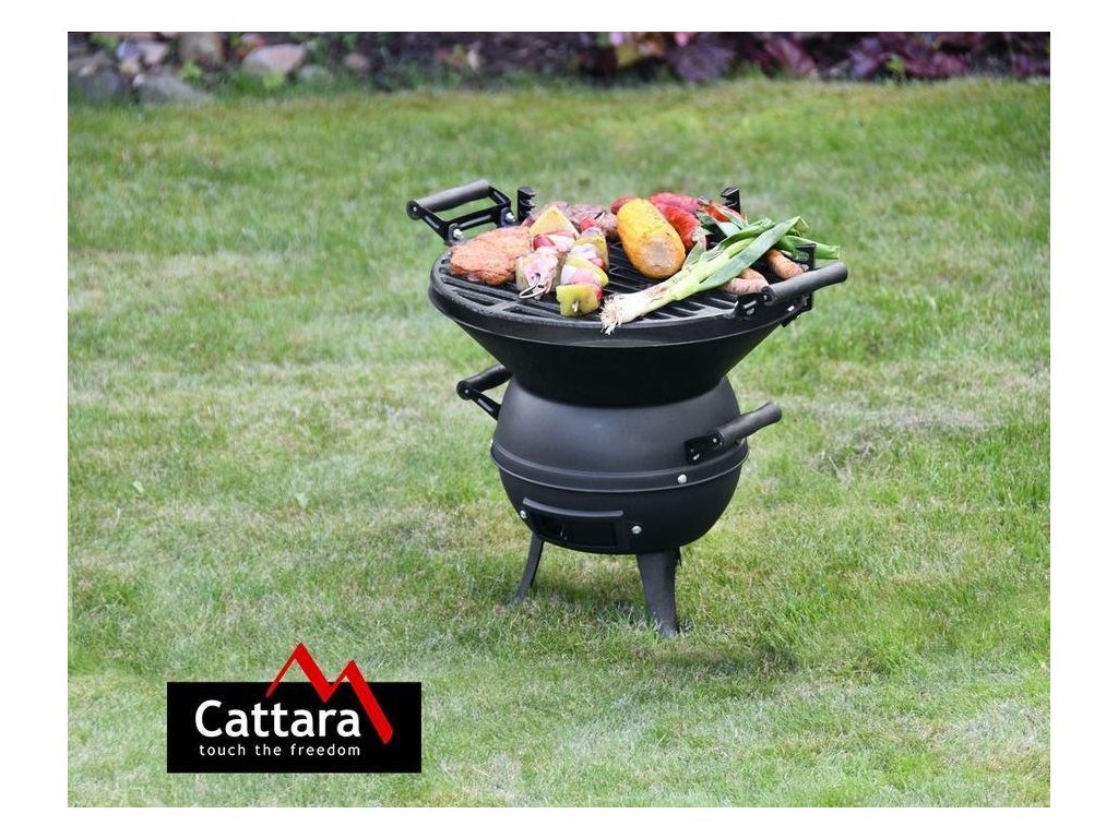 Přenosný gril KETTLE značky Cattara je ideální volbou pro zahradu, terasu, rybaření i výlety. Litinová konstrukce s černěným povrchem a tři kovové nohy zajišťují dlouhou životnost a rovnoměrné rozložení tepla. Díky dřevěným madlům gril snadno přenesete a výškově nastavitelný litinový rošt vám umožní přizpůsobit intenzitu grilování podle potřeby. Díky regulovatelné spodní ventilaci si navíc snadno upravíte proudění vzduchu.