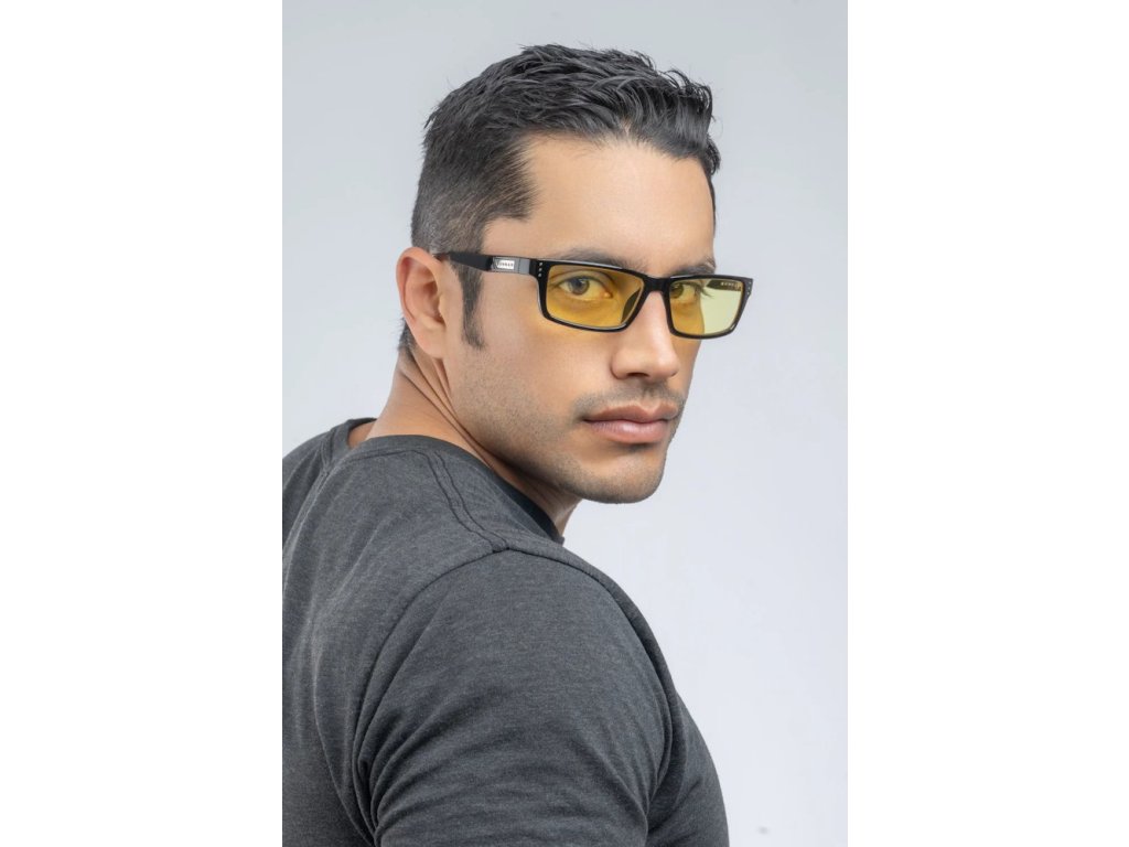 Do kvalitního nylonového rámu s obdélníkovým tvarem jsou vsazena jantarová skla s oboustrannou antireflexní vrstvou, která blokují 65 % modrého světla a 100 % ultrafialového záření. Tak dochází ke snížené námaze očí a předcházení celkové únavě, pálení očí nebo bolesti hlavy. Moderní design s pevným nosním hřebenem a širokým střihem je ideální pro dlouhodobé nošení a širší tvary obličeje.