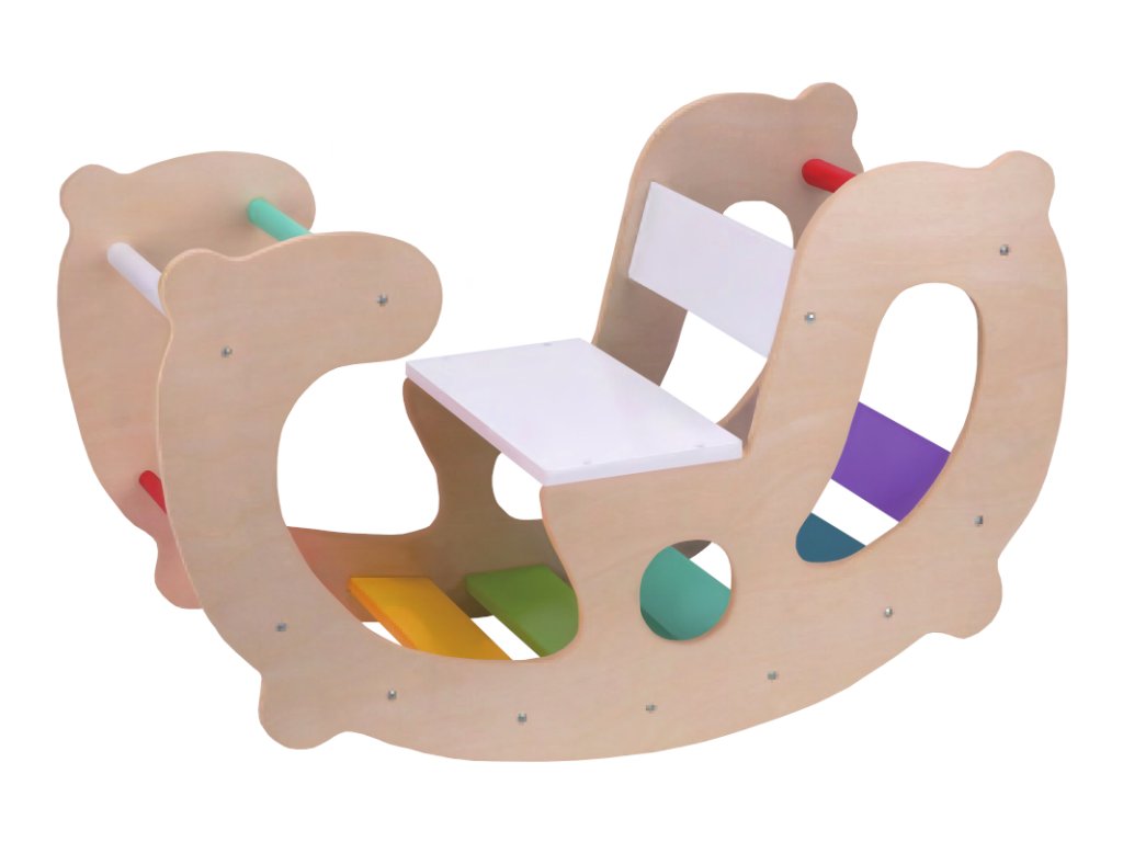 Kvalitní montessori houpačka od značky 2Kids Toys podpoří motorický rozvoj vašeho dítěte. Použije ji jako houpačku nebo ji otočí a promění ji v dráhu. Šplhá po duhových žebřinách a procvičí rovnováhu. Váš potomek si s ní vyhraje nebo ji využije k odpočinku.