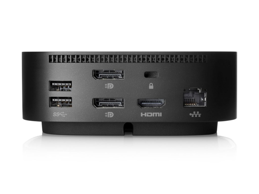 Připojte kabel dokovací stanice k portu USB-C a používejte kabelovou síť, připojujte se k externím monitorům a k příslušenství prostřednictvím dvou portů DisplayPort, HDMI, RJ-45 a pěti portů USB (4x USB 3.0, 1x USB-C).
