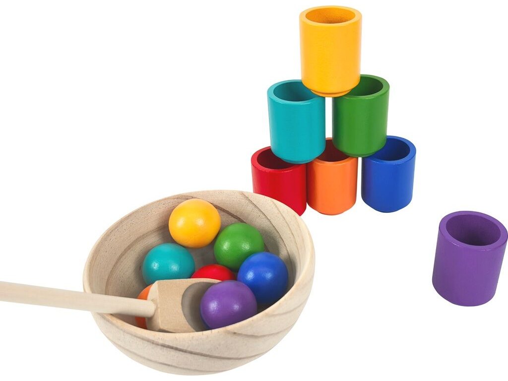 Děti si nejlépe osvojují nové dovednosti prostřednictvím hry. Úkolem je umístit kuličky do kalíšků podle barev pomocí lžíce. Pestrobarevné provedení zaujme každé dítě a přináší zábavu i hravé učení. Dřevěná hračka učí děti manipulovat s předměty, posiluje hmatovou citlivost a rozvíjí vizuální vnímání. Je vhodná pro děti od 3 let, které objevují svět prostřednictvím smyslů a pohybu.