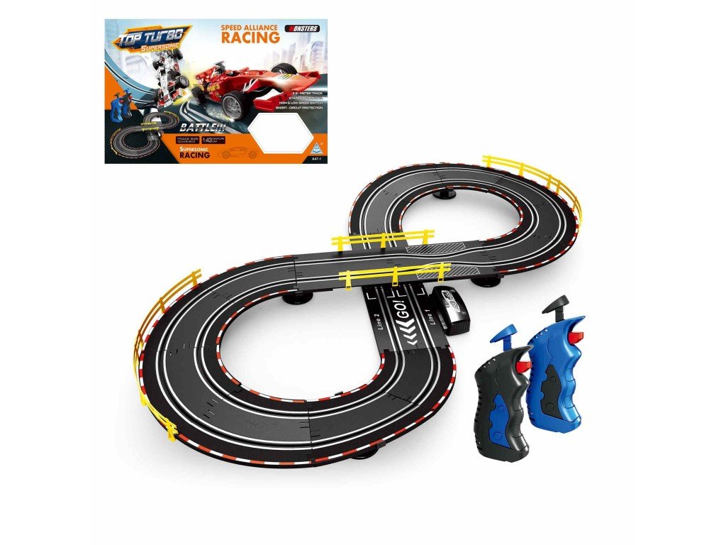 Hračka pro malé závodníky nabízí zábavnou autodráhu ve tvaru osmičky o rozměrech 100 × 48 × 9 cm. Díky napájení přes adaptér se děti mohou pustit do akce bez časté výměny baterií. Ideální zábava pro kluky i holky od 6 let.