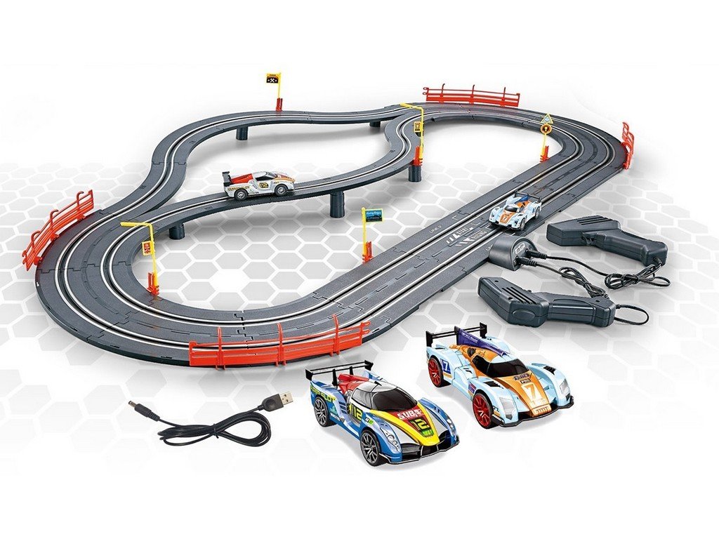 Autodráha Racing collection udělá radost každému malému závodníkovi a nadšenci do autíček. Užije si rychlou jízdu a pomocí ovladačů rychlosti uspořádá se svými sourozenci nebo kamarády závody. Stačí sestavit trať a vyrazit. Balení obsahuje 2 závodní auta, 2 ovladače s USB kabelem pro externí napájení, most a další příslušenství. Celková délka trati je 300 cm. Kdo pojede rychleji, objede kolečko jako první a vyhraje?