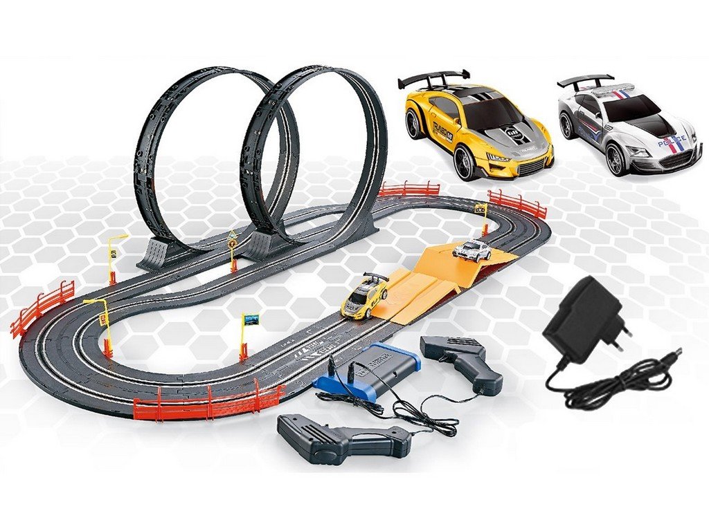 Pro neskutečně vzrušující jízdu ocení vaše ratolest nebezpečný „looping“ oblouk, super skákací můstek s vhodnými doplňky, jasně oranžová svodidla a možnost překřížení či zúžení trati, takže se jako mávnutím proutku promění na zkušeného závodníka, kaskadéra nebo návrháře závodních okruhů. Křížení na trati zajistí vyrovnané závody, neboť jednu zatáčku pojede autíčko vnitřní stopu a druhou zatáčku vnější. Navíc díky nehodám a kolizím při křížení trasy závody získají na větší atraktivitě, díky čemuž se bude bavit celá rodina.