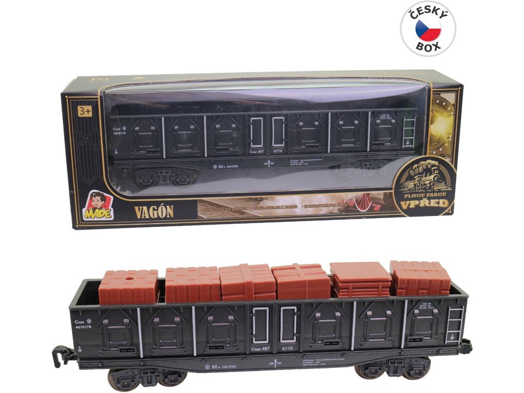 Rozšiřte svou železniční stanici o tolik vagónů, kolik jen budete chtít. Vysokostěnný vagón MaDe vypadá jako opravdový a navíc k němu dostanete i náklad, který oživí každou hru. Děti si hraním s vláčkem rozvíjí fantazii i jemnou motoriku. Vysokostěnný design a pevný plast zaručují, že hračka vydrží i pořádnou jízdu.Specifikace