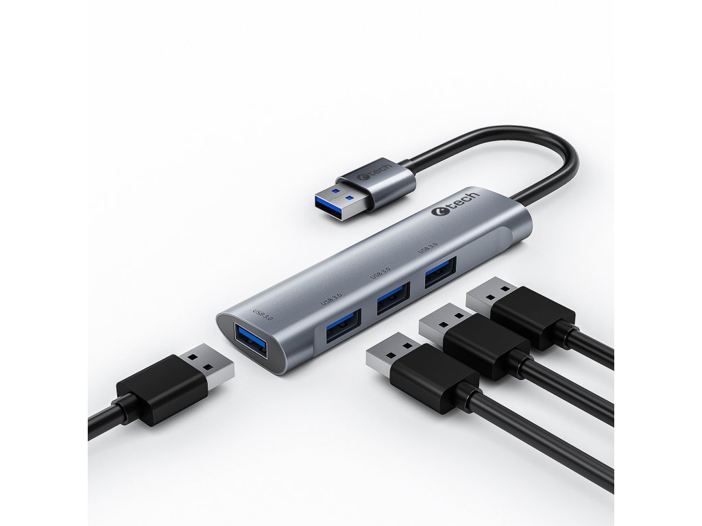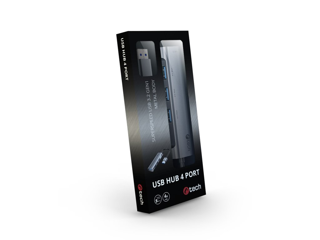 HUB USB C-tech UHB-U3-AL, 4x USB 3.2 Gen 1, hliníkové tělo