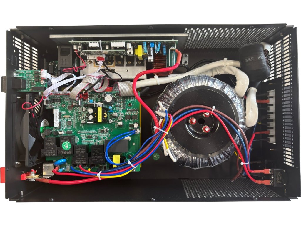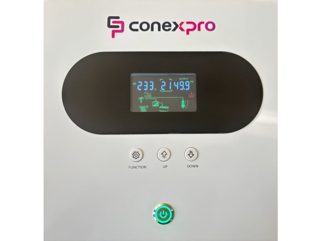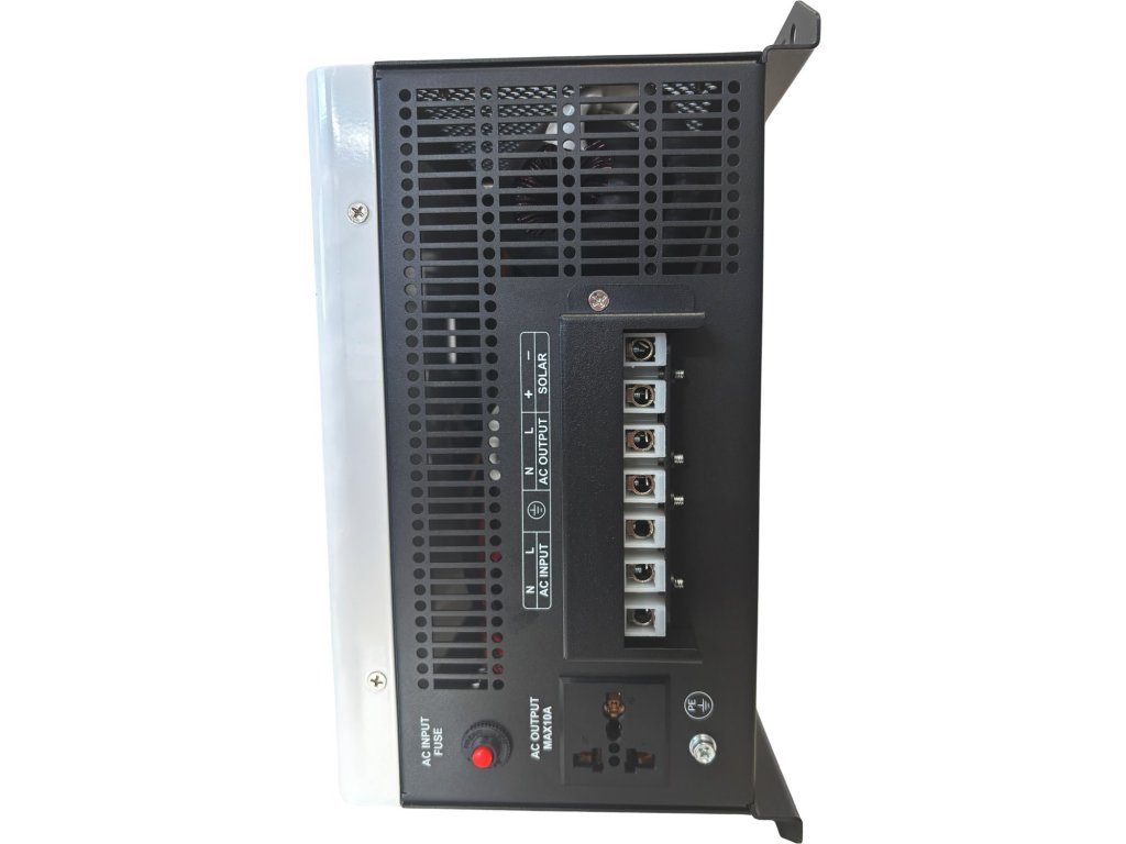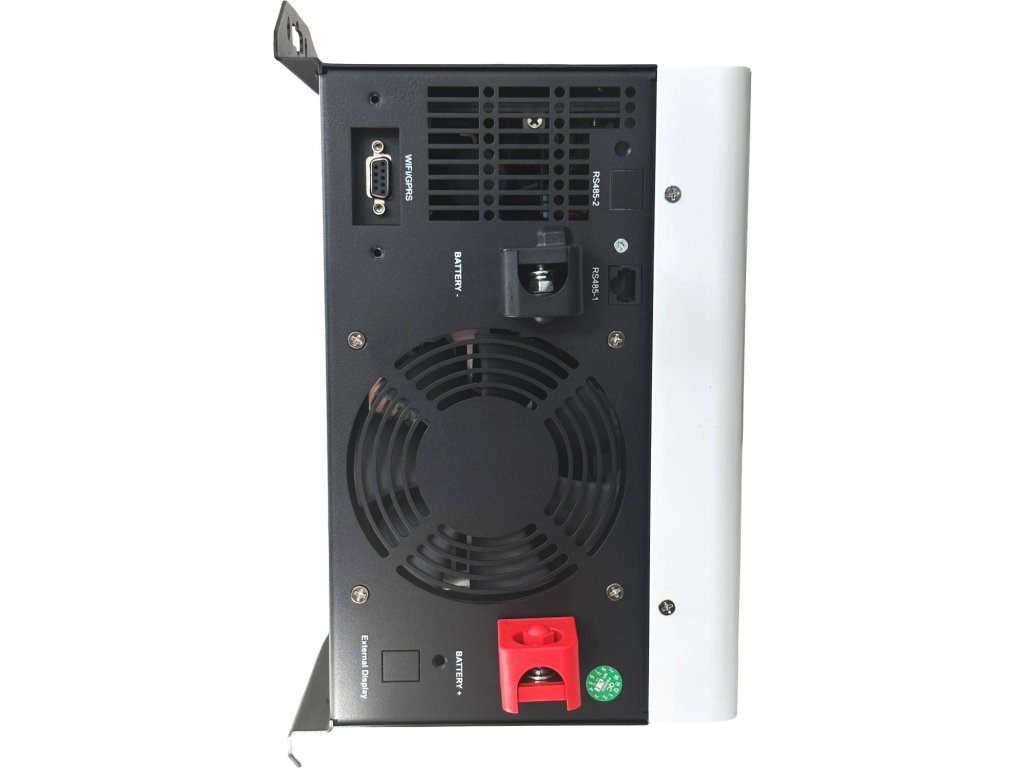 Pokročilý napájecí zdroj poskytuje stabilní a efektivní napájení pro domácnosti, kanceláře i průmyslové instalace. Je plně kompatibilní s LiFePO4, gelovými a olověnými bateriemi (12 V). Zajišťuje inteligentní řízení nabíjení baterií a AC výstupu. Využívá energii ze solárních panelů nebo vstupu 230 V AC. Všechny důležité informace si zobrazíte na chytrém LCD displeji. Na komunikačním portu RS485 můžete navíc monitorovat chybové kódy v reálném čase.