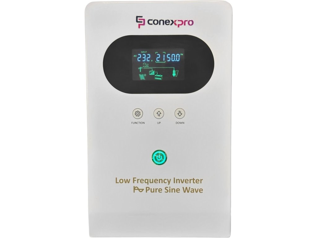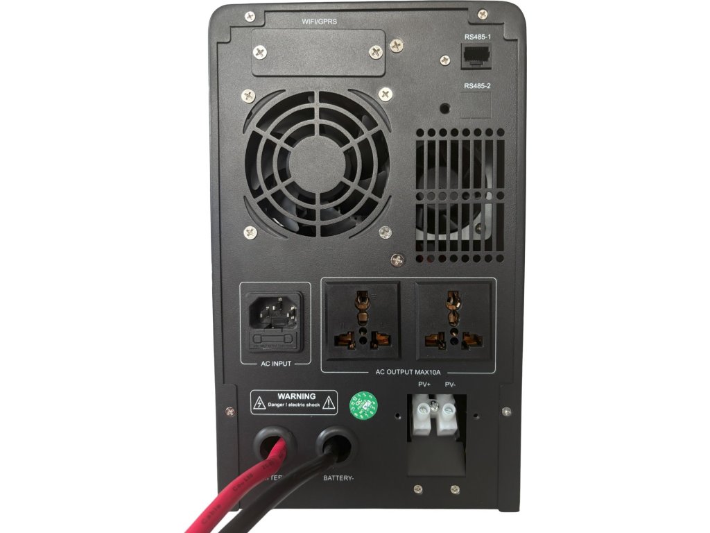 Pokročilý napájecí zdroj poskytuje stabilní a efektivní napájení pro domácnosti, kanceláře i průmyslové instalace. Je plně kompatibilní s LiFePO4, gelovými a olověnými bateriemi (12 V). Zajišťuje inteligentní řízení nabíjení baterií a AC výstupu. Využívá energii ze solárních panelů nebo vstupu 230 V AC. Všechny důležité informace si zobrazíte na chytrém LCD displeji. Na komunikačním portu RS485 můžete navíc monitorovat chybové kódy v reálném čase.