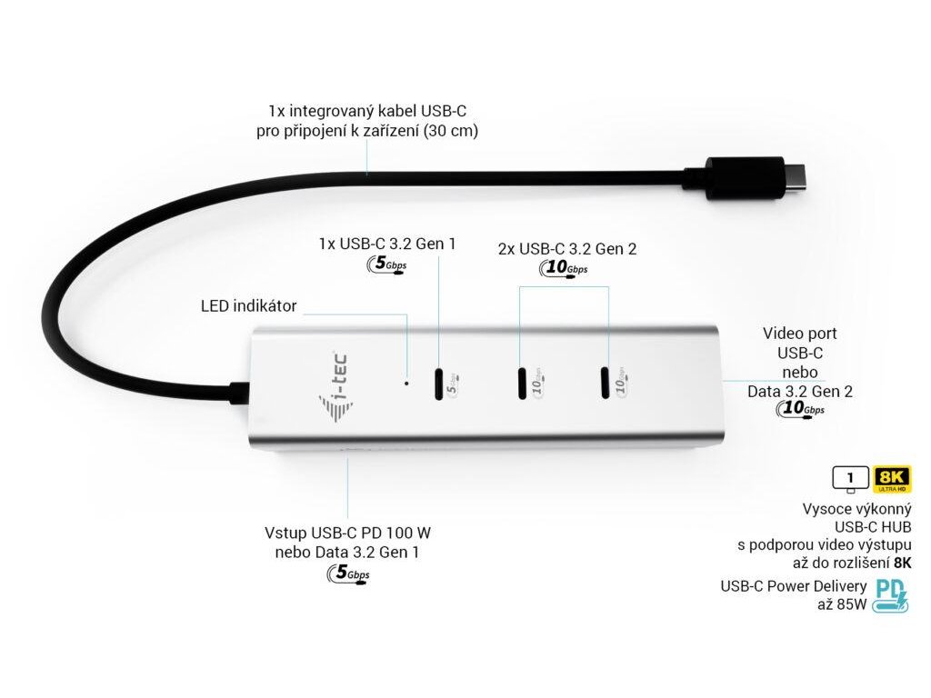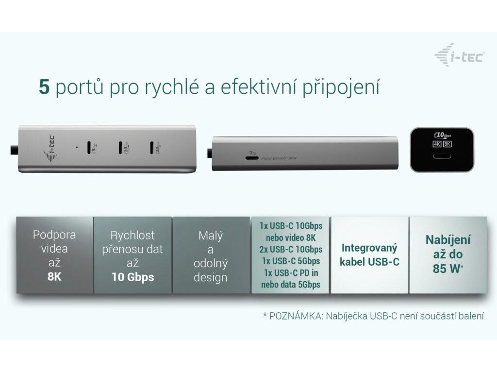 i-tec USB-C Charging Metal HUB 5port with USB-C video 8K, Power Delivery 85W