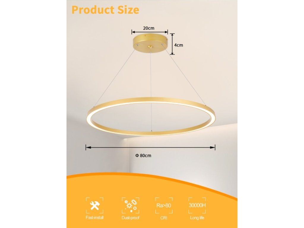 IMMAX NEO FINO SMART závěsné svítidlo 1 kruh, 80cm, 60W, zlaté, Zigbee 3.0, TUYA