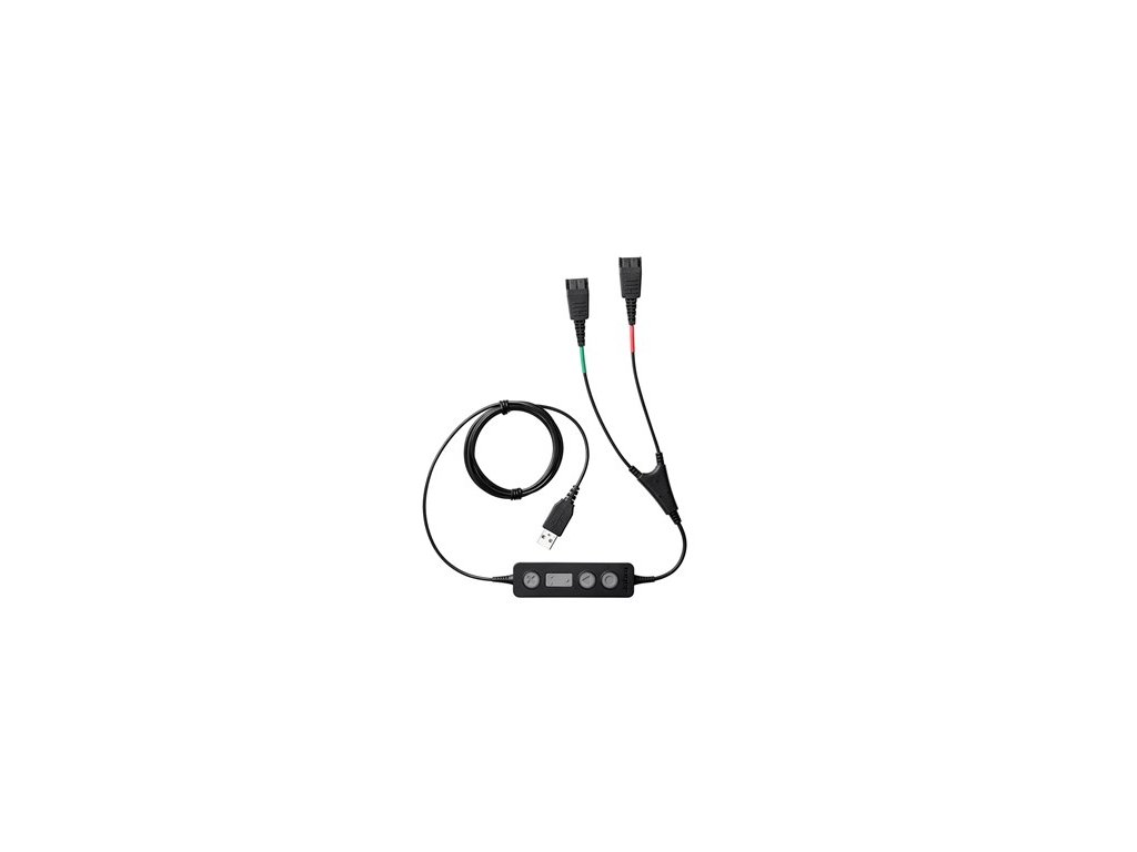 Zůstaňte se ztlumeným mikrofonem nebo se připojte ke konverzaci - pomocí jediného kabelu Model Jabra Link 265 vám poskytne efektivní způsob, jak školit své operátory. Kabelová rozbočka USB pro školitele umožňuje propojení dvou náhlavních souprav Jabra Quick Disconnect (QD) k jednomu počítači, takže vedoucí pracovníci se mohou buď zapojit do hovoru svých operátorů, nebo mohou zůstat se ztlumeným mikrofonem. Snadná správa hovorů s praktickými ovládacími prvky přímo na kabelu Zapojte se do hovoru. Souprava Jabra Link 265 se snadno připojuje, programuje a používá, navíc má i pohodlné ovládání hovorů přímo na kabelu, umožňující například přijímat/ukončovat hovory, nastavovat hlasitost a ztlumit mikrofon. Dotyková ovládací tlačítka se při používání rozsvítí a jsou programovatelná dle individuálních preferencí pro efektivní správu hovorů. Ideální pro sdílení pracovního místa (funkce hot desking) a citlivé pracovní prostředí Jabra Link 265 je počítačový USB kabel pro školitele, který umožňuje po odpojení k počítači rychle připojit a odpojit dvě náhlavní soupravy. Jedná se o ideální řešení pro firmy, které hledají větší flexibilitu na pracovišti, včetně sdílení pracovního místa (hot desking) Proč to nemít, navíc je k dispozici možnost flexibilní konfigurace Jabra Link 265 lze konfigurovat tak, aby vyhovoval vašemu pracovnímu prostředí. Nastavení je optimalizováno pro Jabra PC Suite a Jabra Express, lze jej však nakonfigurovat podle individuálních potřeb. Funkce ochrany sluchu pomáhá předcházet stresu a poraněním sluchu Snižuje pracovní neschopnost a zvyšuje potenciál udržet si zaměstnance. Model Jabra Link 265 poskytuje ochranu proti akustickým rázům a vyhovuje právním předpisům EU týkajících se hluku při práci (směrnice 2003/10/ES).