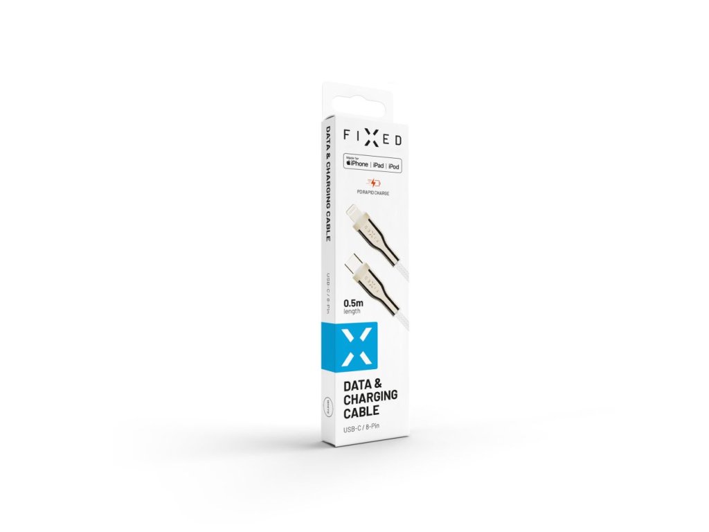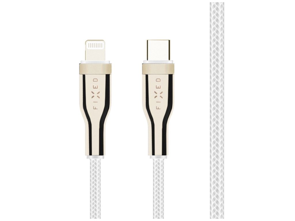 Kabel FIXED datový a nabíjecí s konektory USB-C/Lightning a podporou PD, 0.5 m, MFI, opletený, bílý
