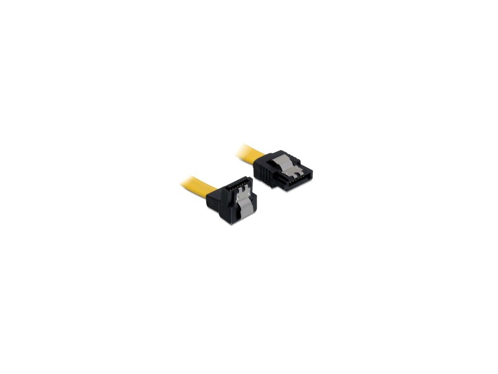 Kabel SATA III 30 cm, přímý/dolů, žlutý, kovová západka