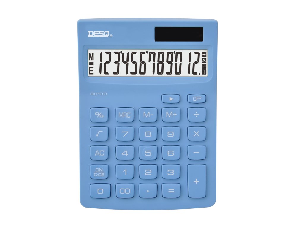 Stolní kalkulačka ve světle modré barvě 12ti místný LCD displej Funkce Backspace, tlačítko s dvojitou nulou Tlačítka pro výpočet procent a odmocniny Trojciferná interpunkce 3 tlačítková paměť Automatické vypnutí, které šetří energii Napájení pomocí solárního panelu nebo baterie AG10 / LR1130 (součástí balení) Hmotnost 110 g Rozměr 142 x 102 x 31 mm