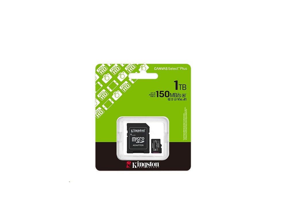 Kingston paměťová karta 1TB Canvas Select Plus Gen 3 microSDXC 150R A1 C10 Card + ADP