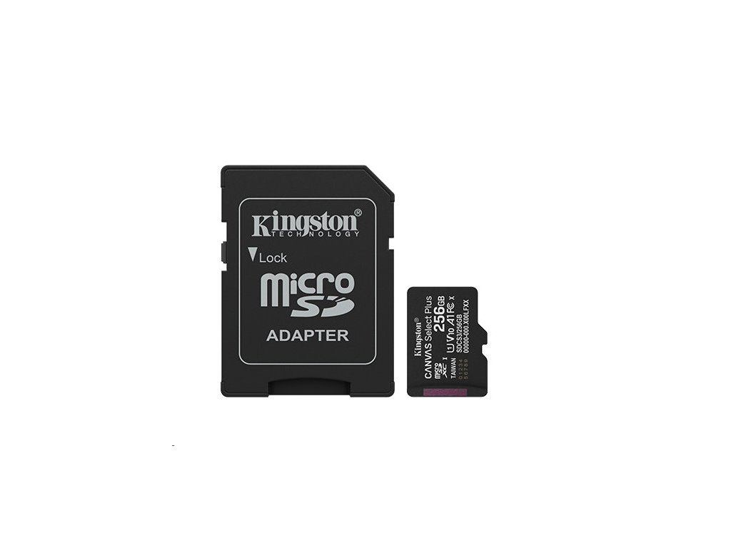 Kingston paměťová karta 256GB Canvas Select Plus Gen 3 microSDXC 150R A1 C10 Card + ADP