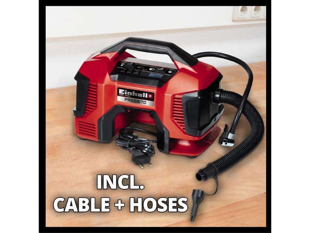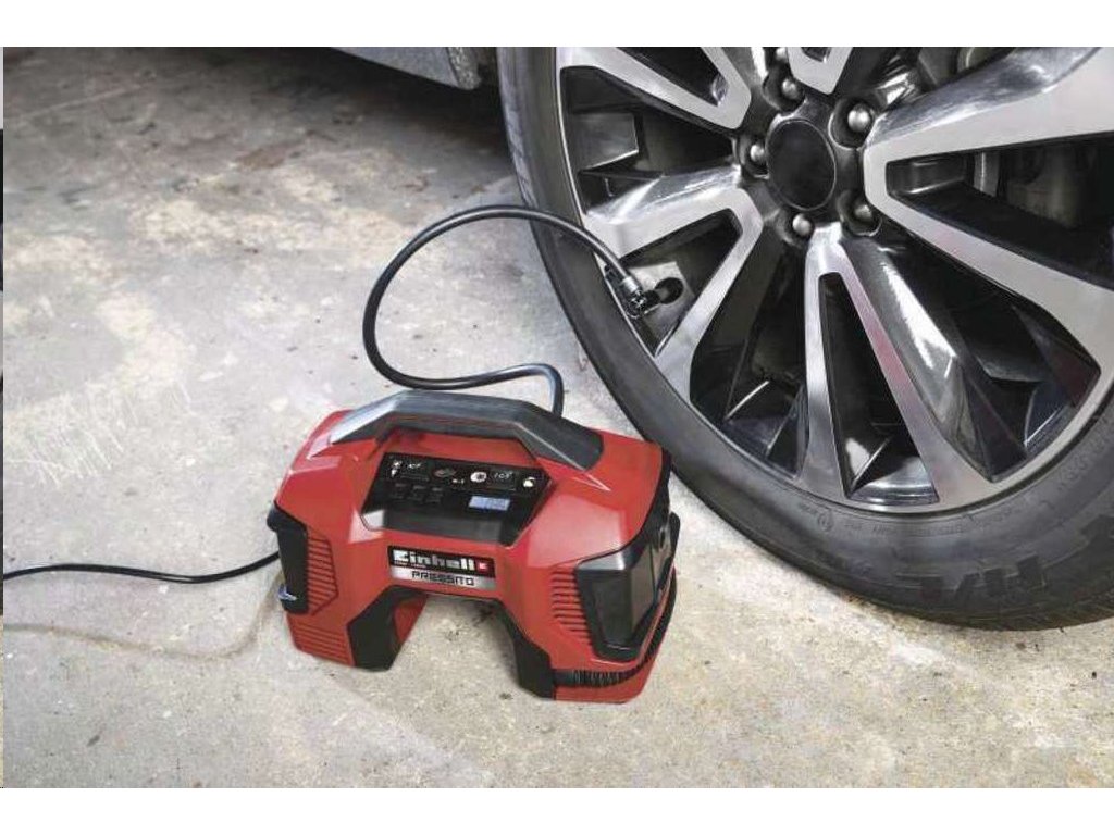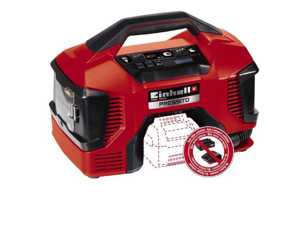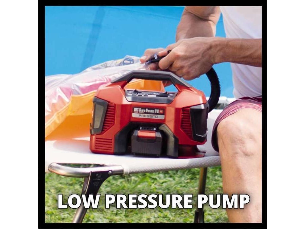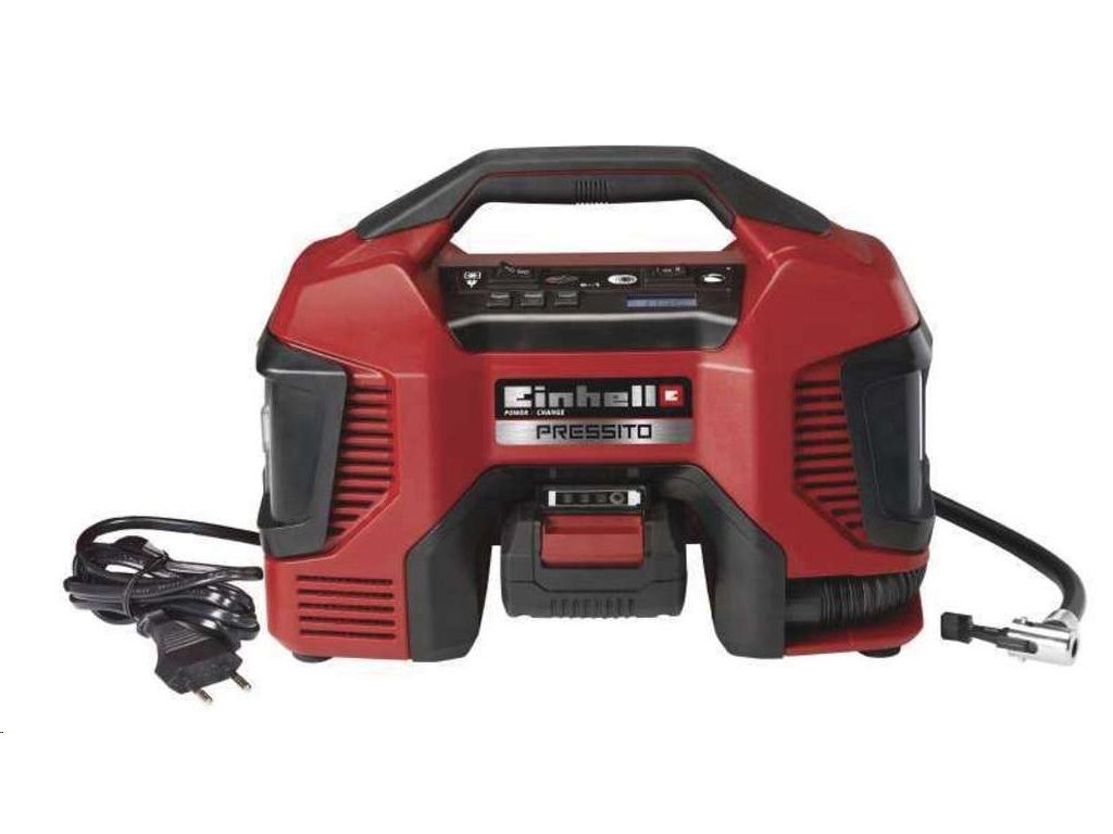 Hybridní kompresor Pressito AKU značky Einhell patří do nové řady Power X-Change. Jeho baterii tak můžete použít pro všechny zahradní i dílenské přístroje této značky a řady. Používejte po celý rok pouze jedinou baterii Power X-Change a ušetřete si čas strávený nabíjením rozdílných typů a peníze při nákupu přístroje bez akumulátoru.