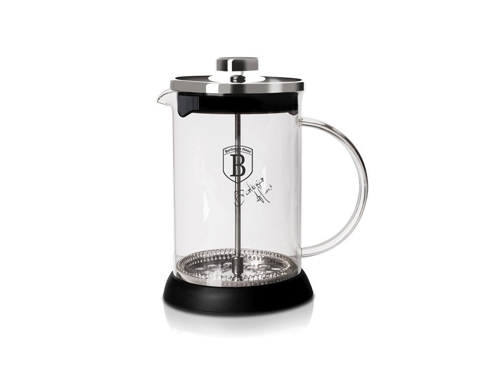 French press značky Berlingerhaus vám během několika minut připraví až 600 ml chutné kávy. French press má silikonový podstavecm skleněnou rukojeť a jeho udržba je velice jednoduchá. Je vyrobený z borosilikátové skla 1,8 mm, který je odolný do 180 °C.