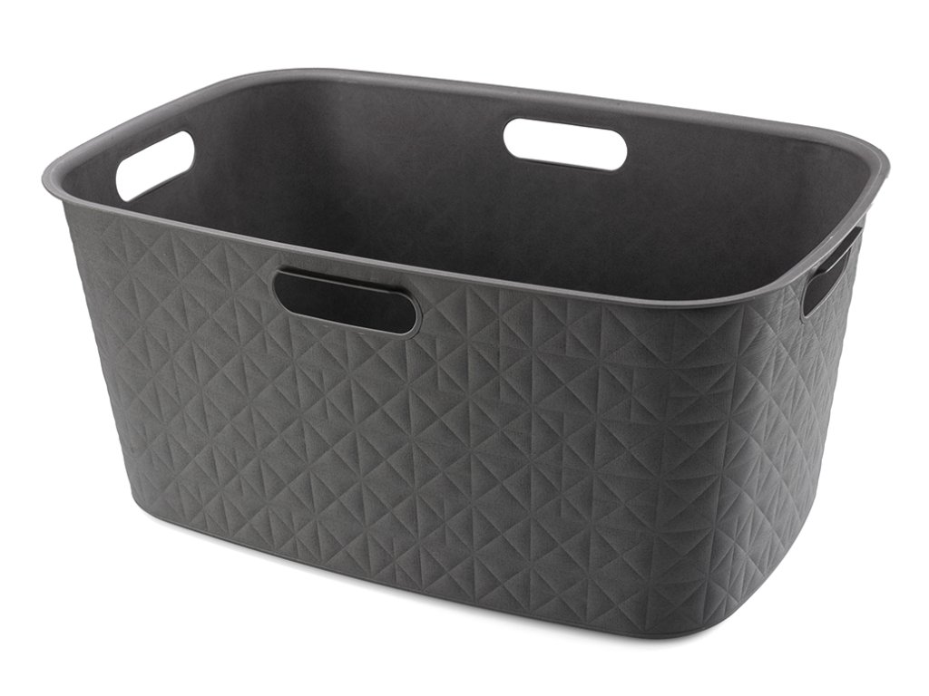 Tento stylový a praktický koš na prádlo se vyrábí ze 70% recyklovaného plastu. Je tedy šetrnější k životnímu prostředí. Zdobí ho jemná textura v podobě trojúhelníků a čtverců, která připomíná prošívanou tkaninu. Doplní vybavení každé koupelny.
